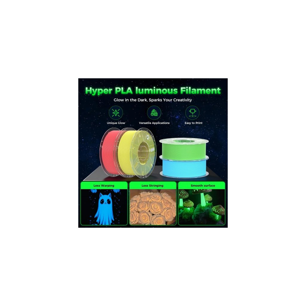 Filament rychle absorbuje světlo (slunce, LED, UV) a následně ve tmě jasně a dlouho svítí, takže vaše výtisky vyniknou i po zhasnutí.