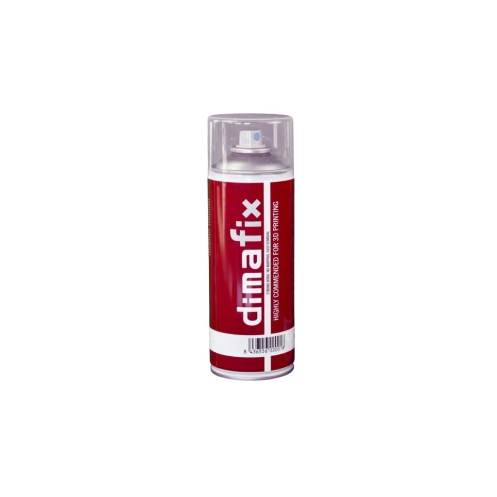 Dimafix sprej je aerosolové lepidlo určené pro 3D tiskárny s vyhřívanou podložkou. Tento sprej zajišťuje silnou přilnavost mezi první vrstvou a tiskovou plochou, což zabraňuje deformacím i u velkých objektů. Při teplotě podložky nad 60 °C poskytuje Dimafix vynikající přilnavost, zatímco při teplotě pod 60 °C umožňuje snadné odstranění výtisků. Dimafix je zcela rozpustný ve vodě, což usnadňuje čištění tiskové plochy.
