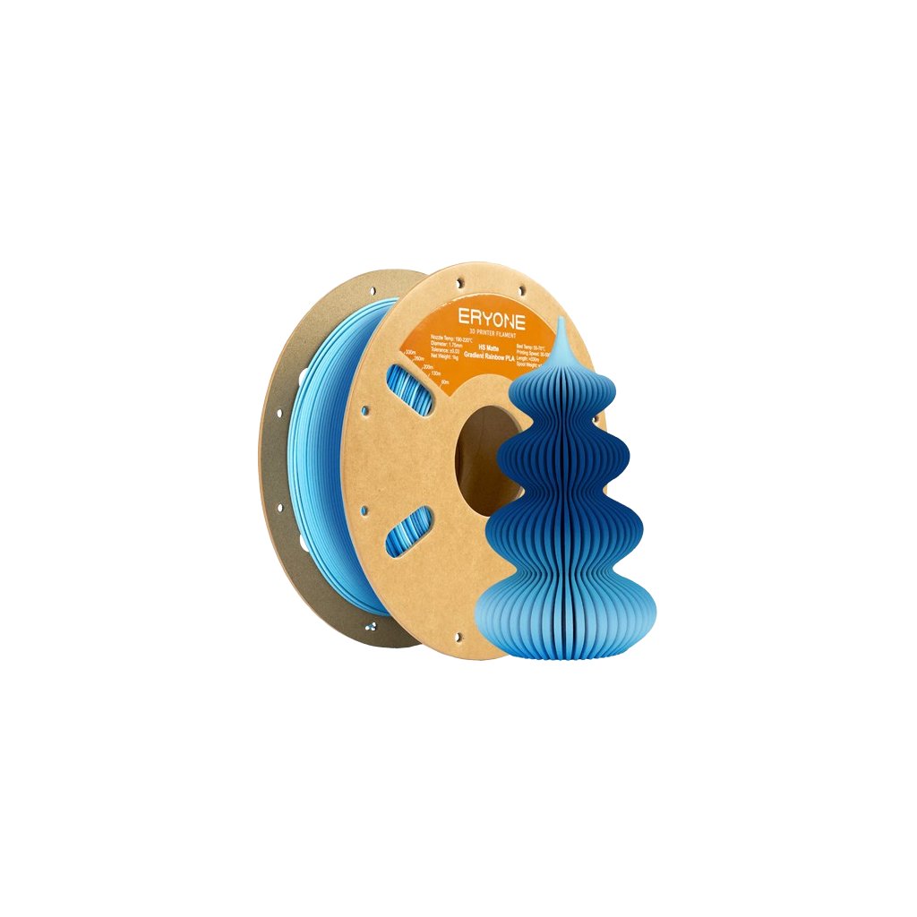 Eryone PLA Matte Multicolor Glacier je prémiový PLA filament s matným povrchem a unikátním barevným gradientem kombinujícím modrou a bílou. Díky své sametové textuře eliminuje odlesky a dodává modelům přírodní a elegantní vzhled. Perfektní volba pro dekorativní modely, umělecké výtisky a designové produkty inspirované přírodními odstíny.
