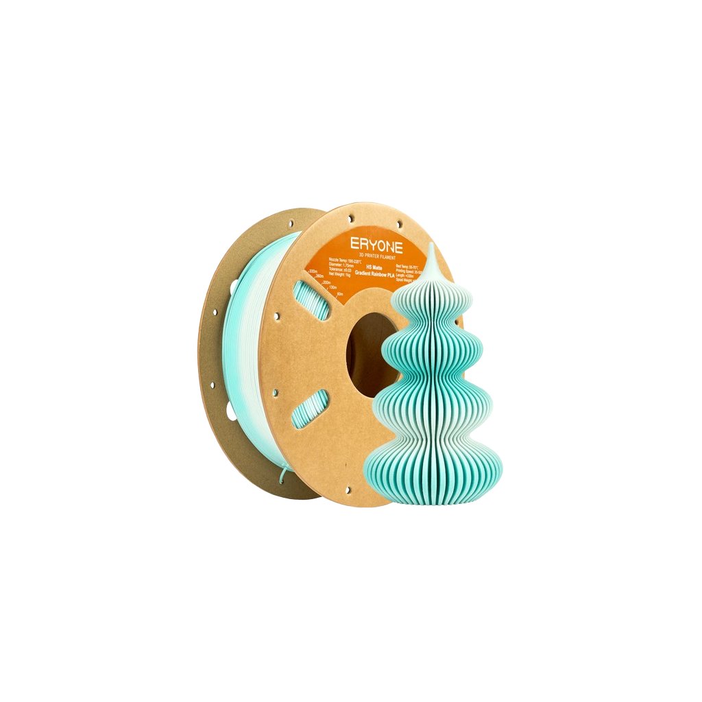 Eryone PLA Matte Multicolor Snowfield je prémiový PLA filament s matným povrchem a unikátním barevným gradientem kombinujícím modrou a bílou. Díky své sametové textuře eliminuje odlesky a dodává modelům přírodní a elegantní vzhled. Perfektní volba pro dekorativní modely, umělecké výtisky a designové produkty inspirované přírodními odstíny.