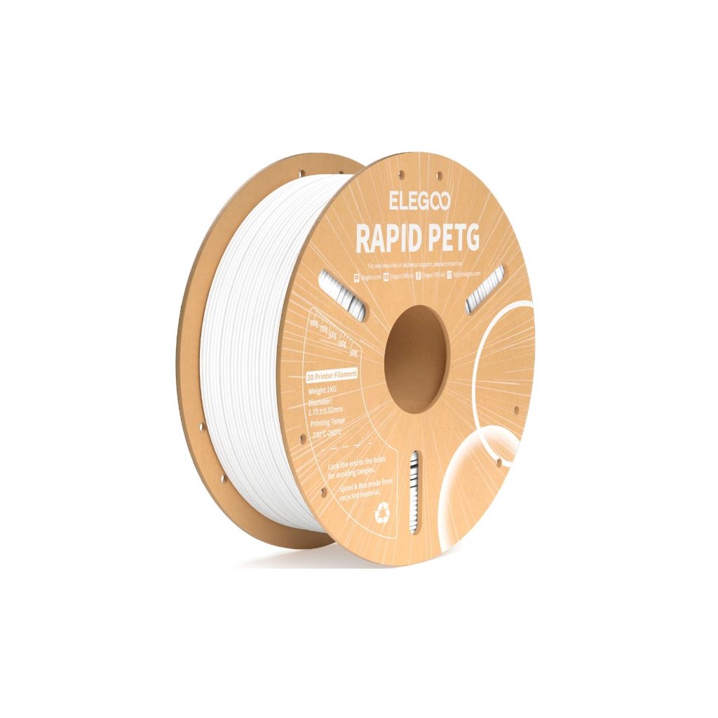Filament Elegoo PETG v čistě bílé barvě je výbornou volbou pro tisk funkčních dílů i vizuálně atraktivních modelů. Díky kombinaci mechanické odolnosti a jednoduché tisknutelnosti je vhodný jak pro začátečníky, tak pro zkušené uživatele. PETG kombinuje výhody PLA (snadné použití) a ABS (pevnost a pružnost) do jednoho univerzálního materiálu.