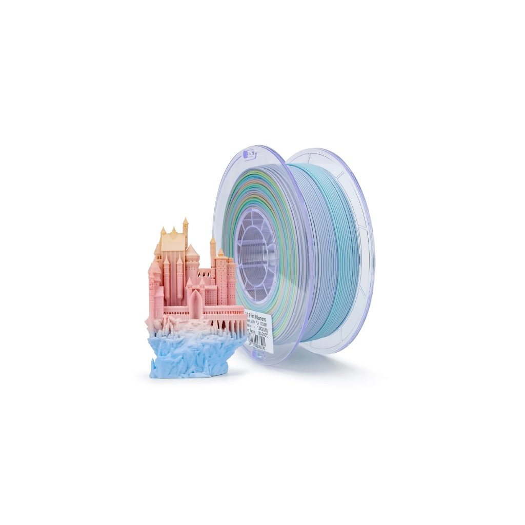 Filament ZIRO PLA Gradient Macaron kombinuje matný povrch s plynulým barevným přechodem v jemných barvách. Tento speciální filament umožňuje tvořit nádherné výtisky s jemným přechodem mezi odstíny, což dodává modelům jedinečný vizuální efekt.